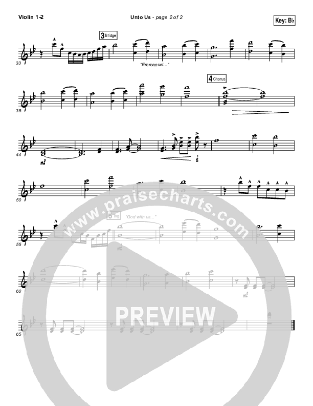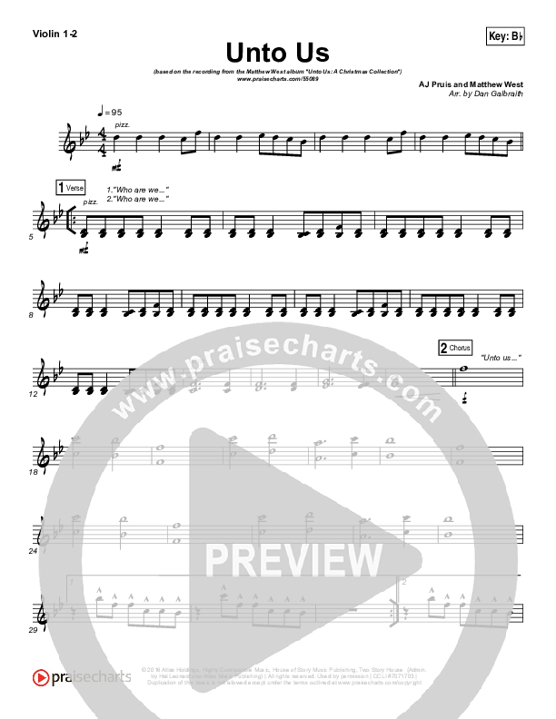 Download the Violin sheet music for Unto Us by Matthew West, from the album Unto Us: A Christmas Collection. This song was arranged by Daniel Galbraith in the key of A, Bb.