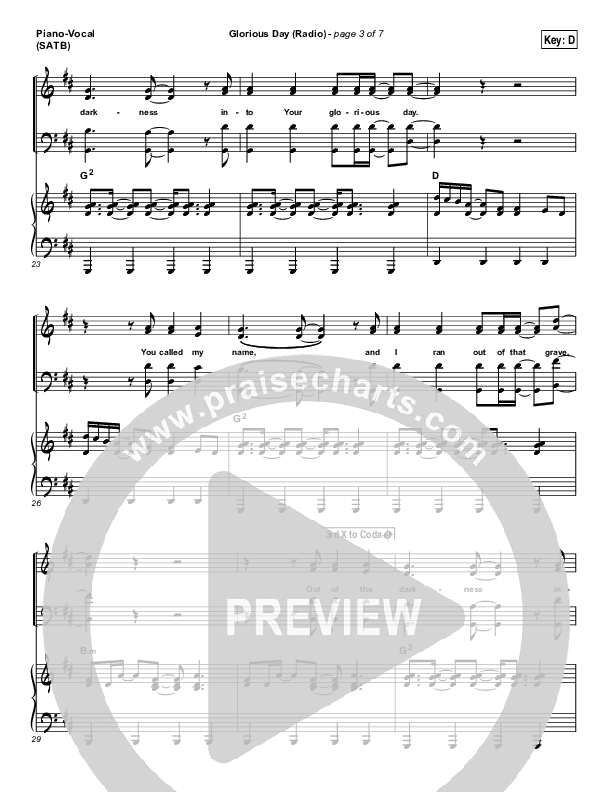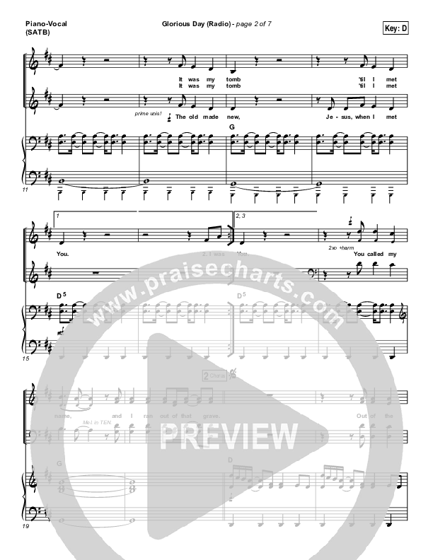 Download the sheet music for Glorious Day (Radio) by Passion / Kristian Stanfill, from the album Glorious Day (Radio Version). This song was arranged by Daniel Galbraith in the key of C, D.
