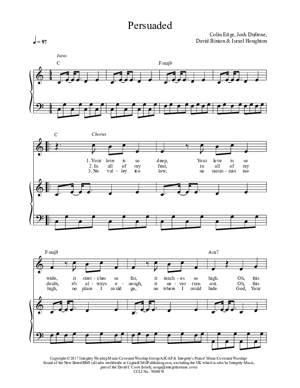 Download the sheet music for Persuaded by Covenant Worship, from the album Sand And Stars. This song was arranged by Integrity Music in the key of C.