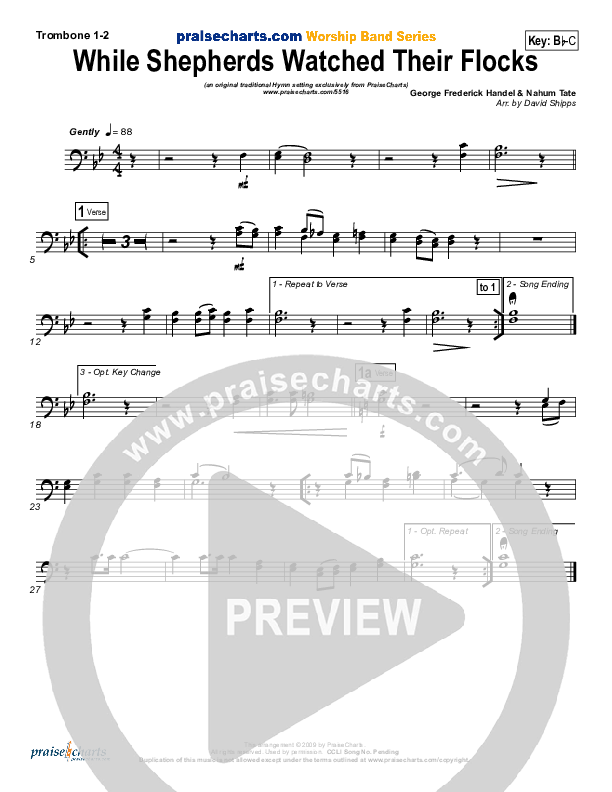 While Shepherds Watched Their Flocks Trombone Sheet Music PDF (Traditional Carol / PraiseCharts)