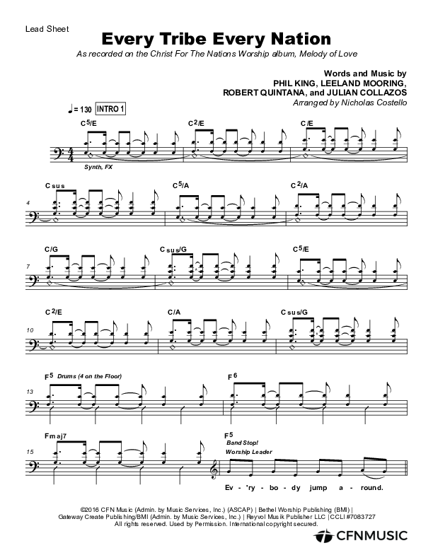 Download the sheet music for Every Tribe Every Nation by Christ For The Nations / Phil King, from the album Melody Of Love. This song was arranged by CFN Music in the key of C.