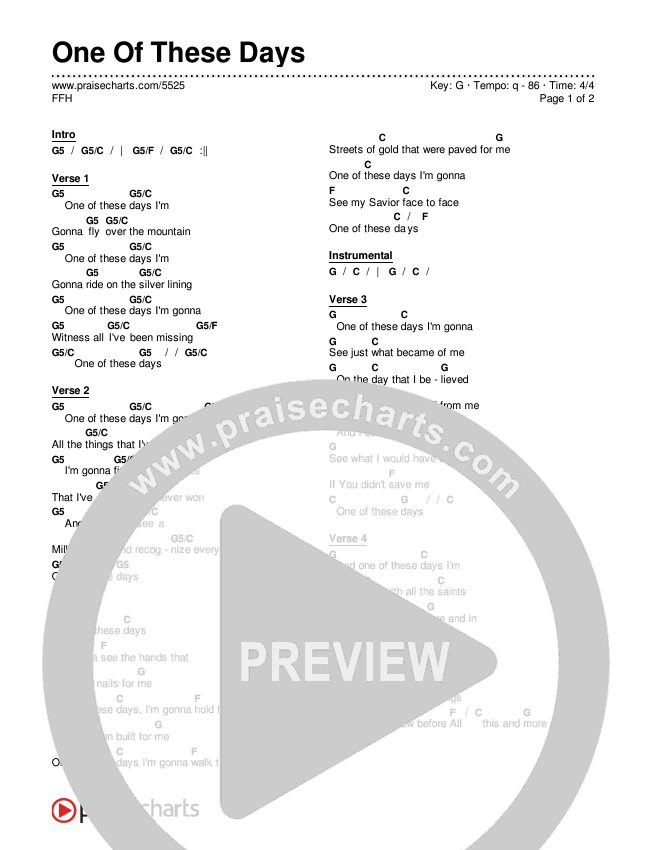One Of These Days Chords PDF (FFH)