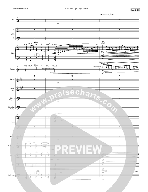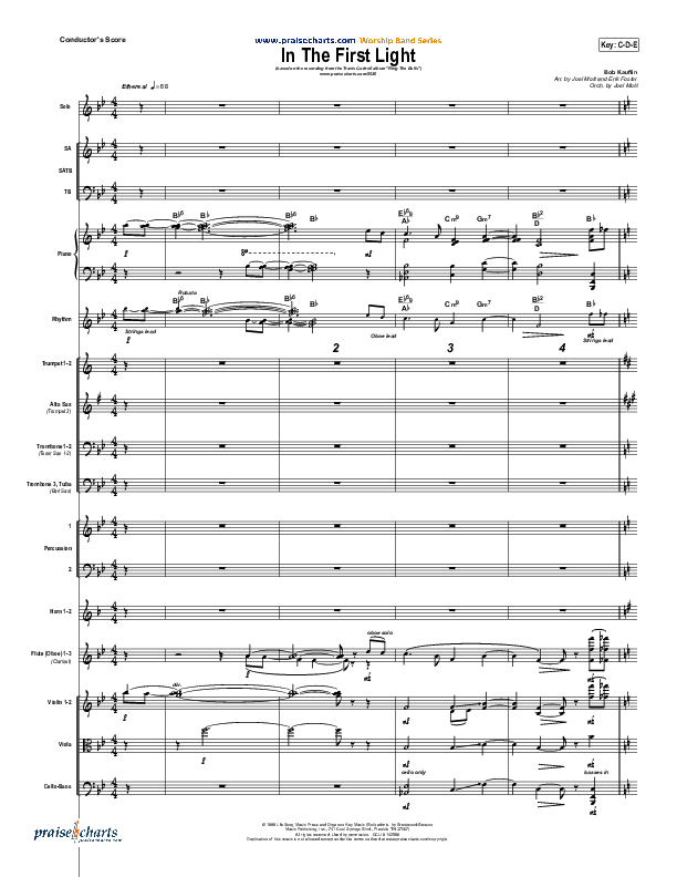 Download the Orchestration for In The First Light by Travis Cottrell, from the album Ring The Bells. This song was arranged by Joel Mott / Erik Foster in the key of C, Db.
