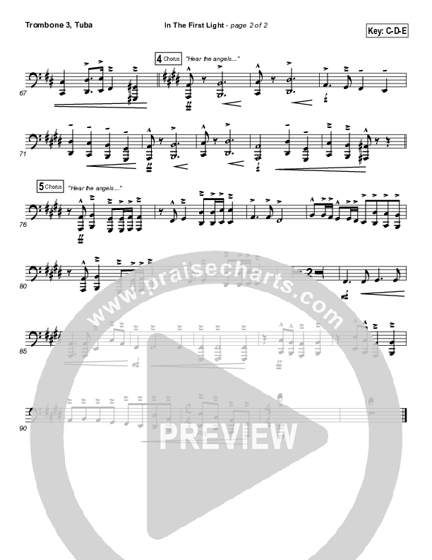 Download the Trombone 3/Tuba sheet music for In The First Light by Travis Cottrell, from the album Ring The Bells. This song was arranged by Joel Mott / Erik Foster in the key of C, Db.
