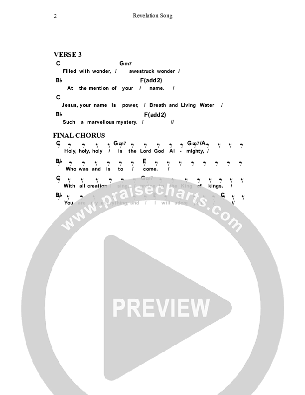 Download the PDF Chord Charts for Revelation Song by Dennis Prince / Nolene Prince, from the album Resource Christian Music.