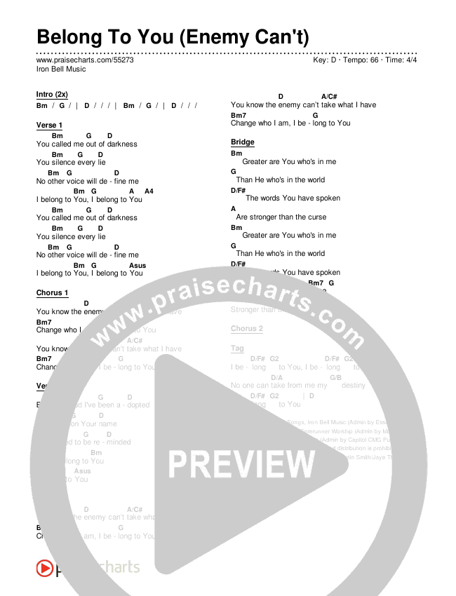 Belong To You (Enemy Can't) Chords PDF (Iron Bell Music)