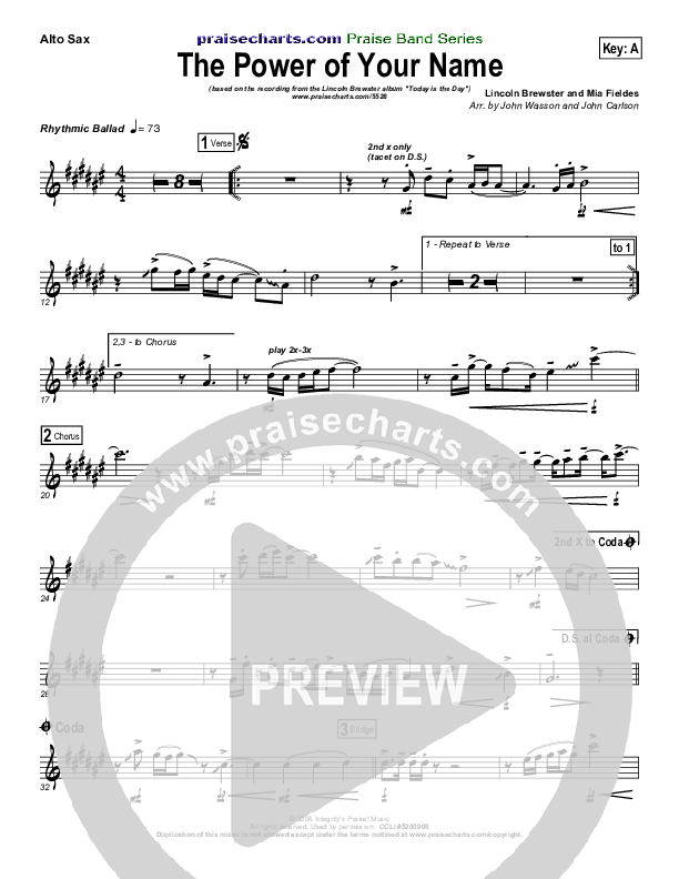 The Power Of Your Name Alto Sax Sheet Music PDF (Lincoln Brewster)
