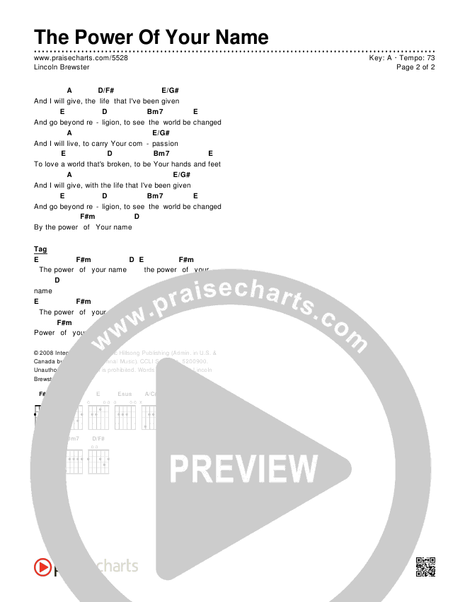 The Power Of Your Name Chords PDF (Lincoln Brewster)