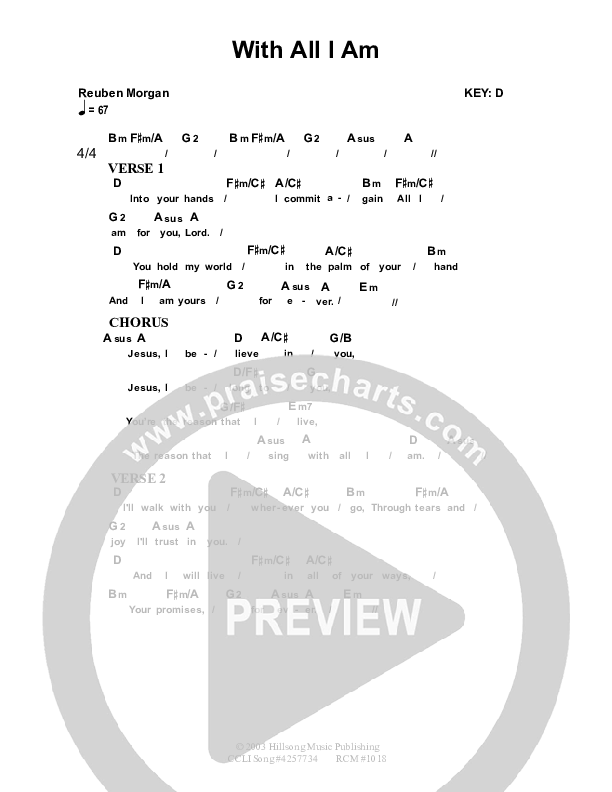 Download the PDF Chord Charts for With All I Am by Dennis Prince / Nolene Prince, from the album Resource Christian Music.