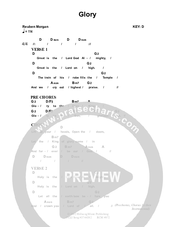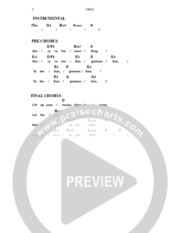 Download the PDF Chord Charts for Glory by Dennis Prince / Nolene Prince, from the album Resource Christian Music.