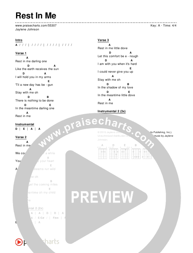 Download the PDF Chord Charts for Rest In Me by Jaylene Johnson, from the album Potter & Clay.