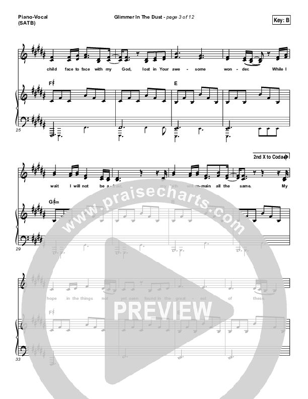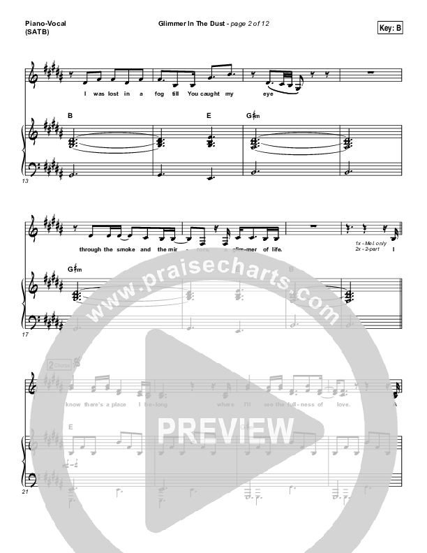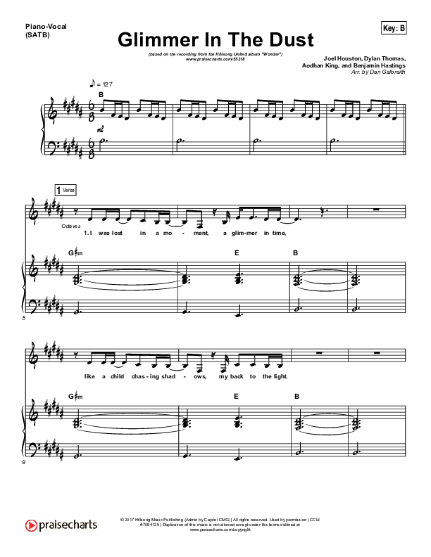 Download the sheet music for Glimmer In The Dust by Hillsong UNITED, from the album Wonder. This song was arranged by Daniel Galbraith in the key of B, Bb.