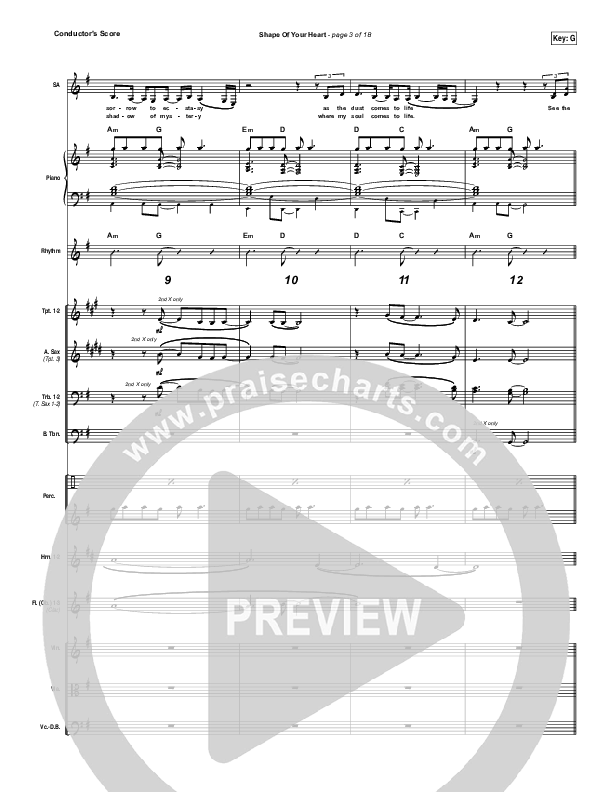 Download the Orchestration for Shape Of Your Heart by Hillsong UNITED, from the album Wonder. This song was arranged by Daniel Galbraith in the key of Ab, G.