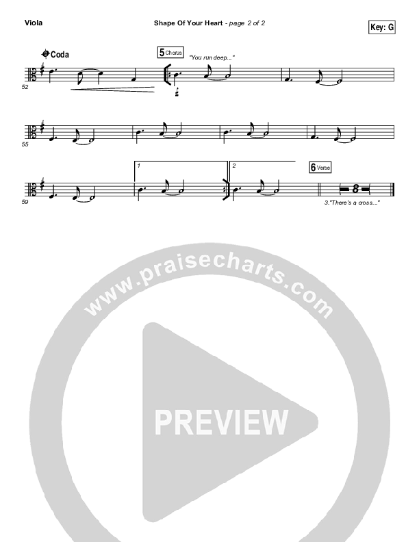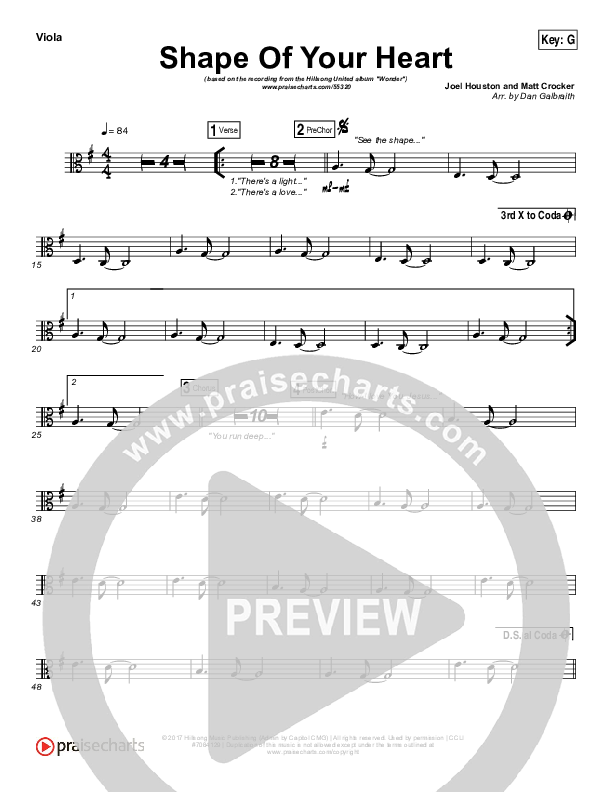 Download the Viola sheet music for Shape Of Your Heart by Hillsong UNITED, from the album Wonder. This song was arranged by Daniel Galbraith in the key of Ab, G.
