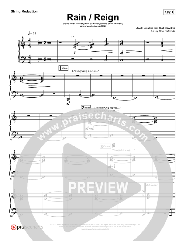Download the Orchestration for Rain / Reign by Hillsong UNITED, from the album Wonder. This song was arranged by Daniel Galbraith in the key of C, D.