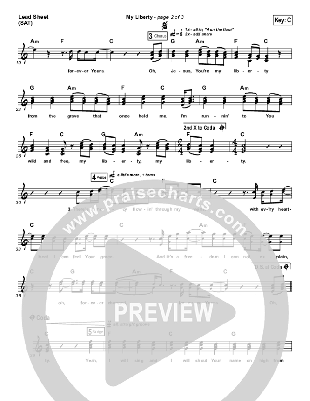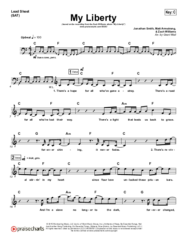 Download the sheet music for My Liberty by Zach Williams, from the album Chain Breaker. This song was arranged by Grant Wall in the key of B, C.