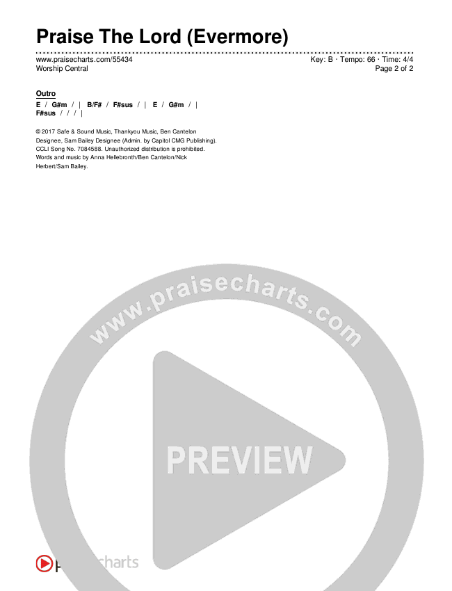 Praise The Lord (Evermore) Chords PDF (Worship Central)