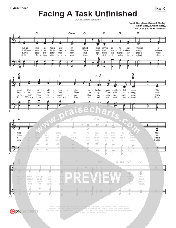 Facing A Task Unfinished Hymn Sheet (Keith & Kristyn Getty)