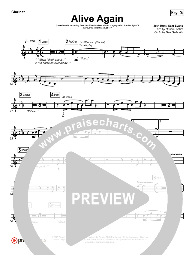Download the Orchestration wind parts for Alive Again by Planetshakers, from the album Legacy - Part 1: Alive Again. This song was arranged by Dustin Loehrs / Daniel Galbraith in the key of C, Db.