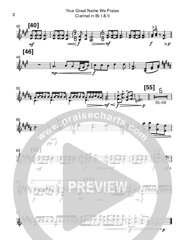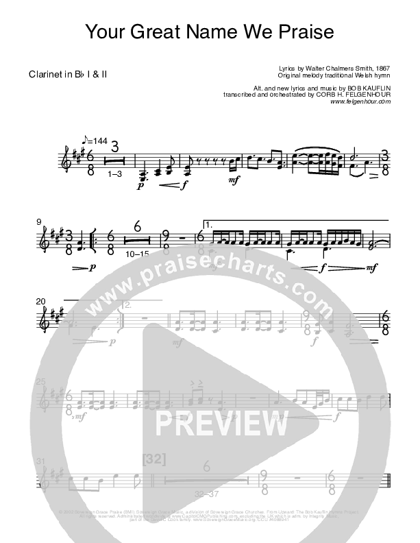 Download the Clarinet sheet music for Your Great Name We Praise by Bob Kauflin, from the album Upward. This song was arranged by Corb Felgenhour in the key of G.