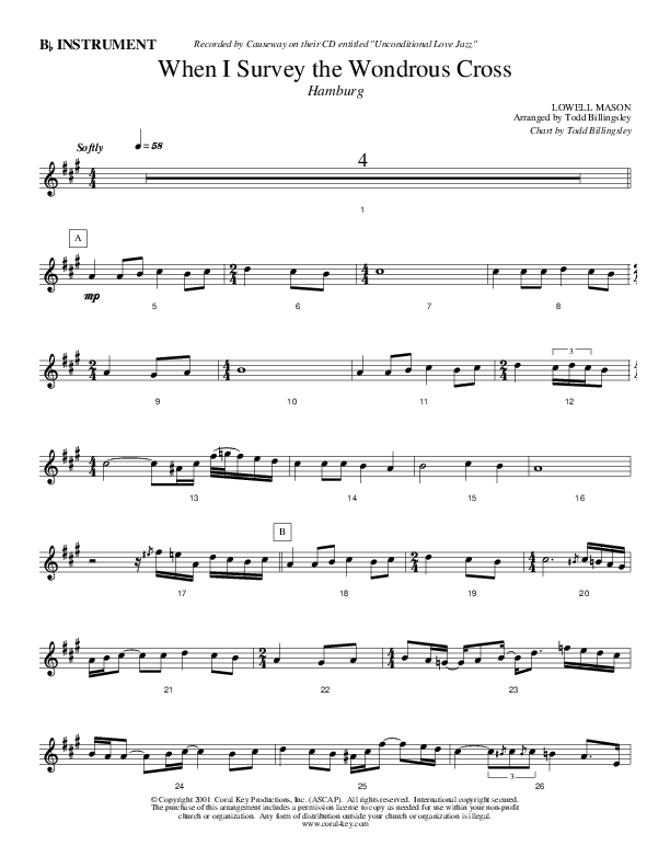 Download the Orchestration for When I Survey The Wondrous Cross by Causeway, from the album Unconditional Love Jazz.