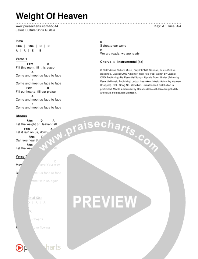Weight Of Heaven Chords PDF (Jesus Culture / Chris Quilala)