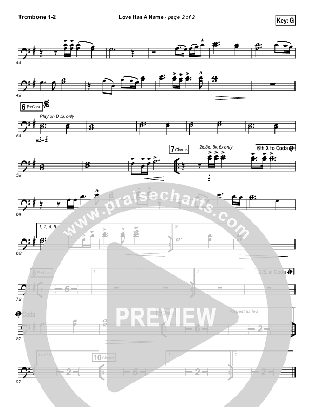 Download the Trombone 1,2 sheet music for Love Has A Name by Jesus Culture / Kim Walker-Smith, from the album Love Has A Name. This song was arranged by Jeff Moore / Daniel Galbraith in the key of Ab, G.