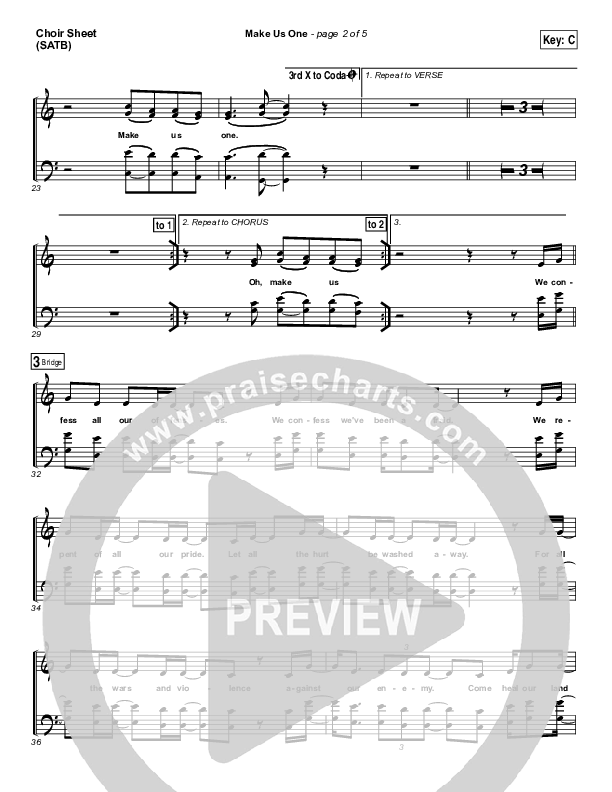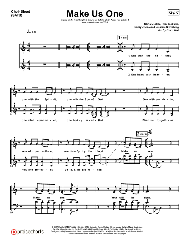 Download the Choir Sheet for Make Us One by Jesus Culture / Chris Quilala, from the album Love Has A Name. This song was arranged by Grant Wall in the key of Bb, C.