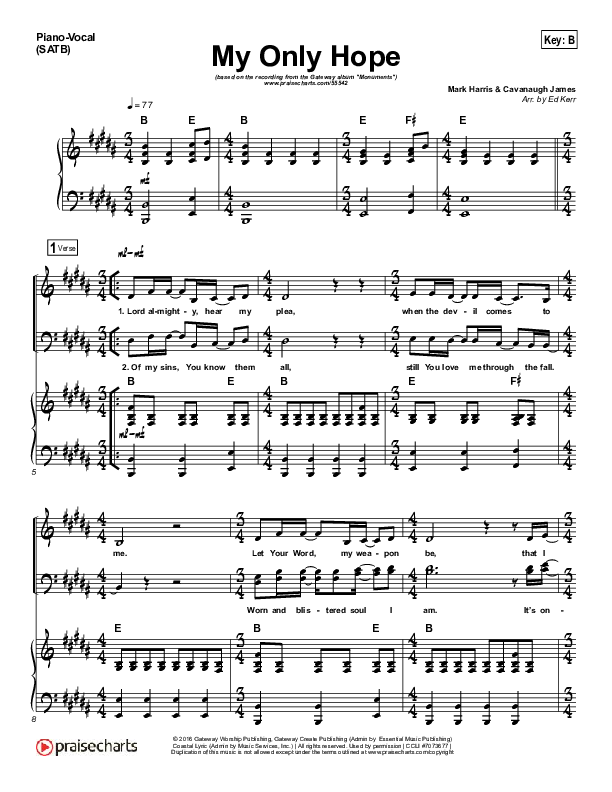 Download the sheet music for My Only Hope by GATEWAY, from the album Monuments. This song was arranged by Ed Kerr in the key of A, B.