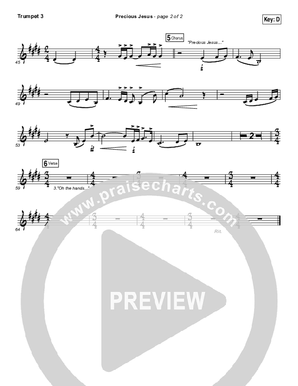 Download the Trumpet 3 sheet music for Precious Jesus by GATEWAY, from the album Monuments. This song was arranged by Dustin Loehrs / Daniel Galbraith in the key of D, Eb.