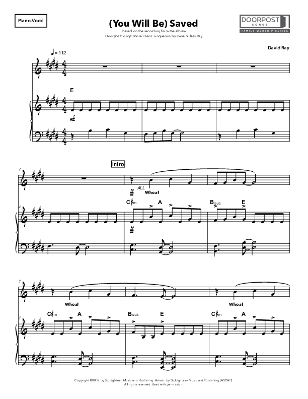 Download the sheet music for (You Will Be) Saved by Doorpost Kids Worship / Dave and Jess Ray, from the album More Than Conquerors.