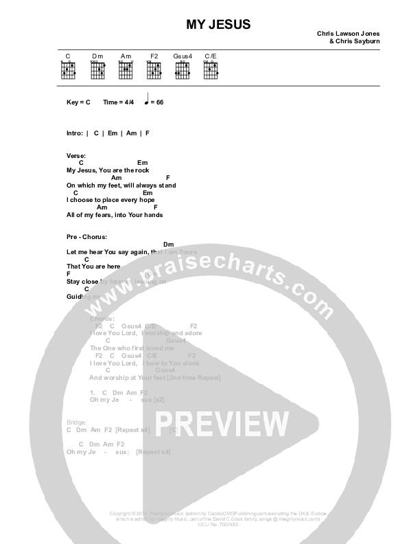 Download the PDF Chord Charts for My Jesus by Chris Sayburn, from the album Nothing But Grace. This song was arranged by Integrity Music in the key of C.