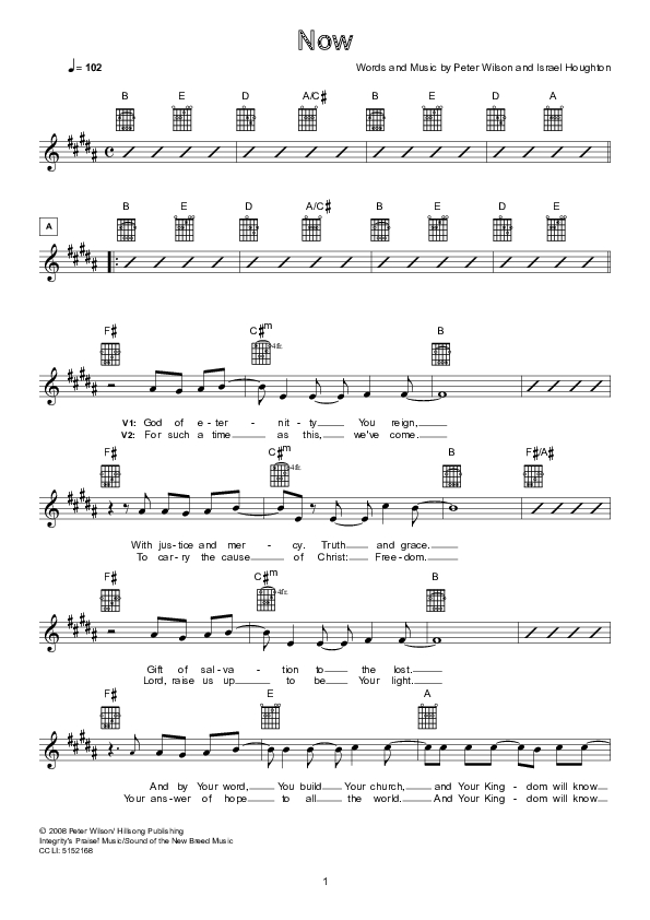 Download the sheet music for Now by Hillsong London / Hillsong Worship, from the album Hail To The King. This song was arranged by Hillsong Music in the key of B.