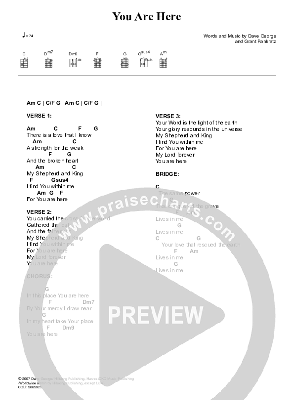 Download the PDF Chord Charts for You Are Here (The Same Power) by Hillsong London / Hillsong Worship, from the album Hail To The King. This song was arranged by Hillsong Music in the key of C.