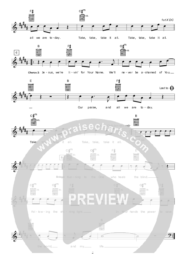 Download the sheet music for Take It All by Hillsong Worship, from the album I Heart Revolution. This song was arranged by Hillsong Music in the key of B.