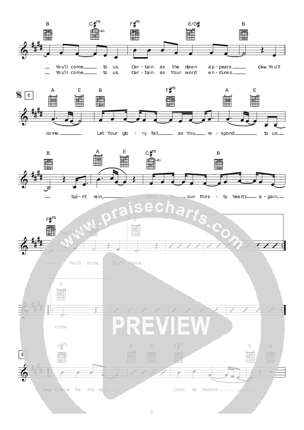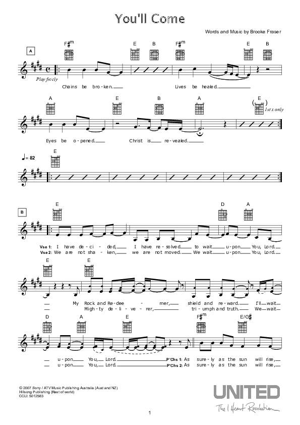 Download the sheet music for You'll Come by Hillsong Worship, from the album I Heart Revolution. This song was arranged by Hillsong Music in the key of E.