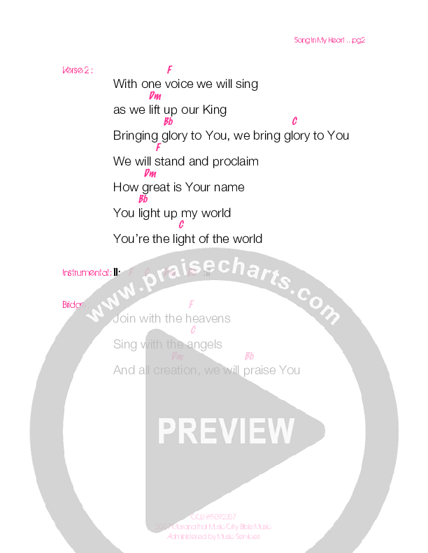 Download the PDF Chord Charts for Song In My Heart by Generation Unleashed, from the album Generation Unleashed.
