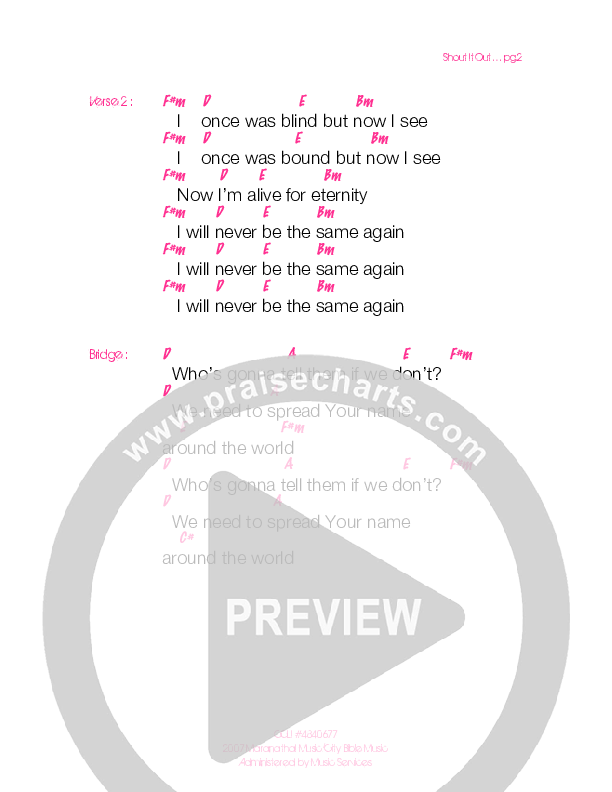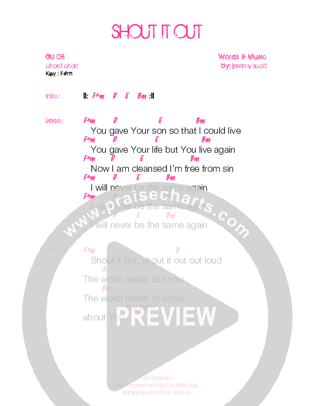 Download the PDF Chord Charts for Shout It Out by Generation Unleashed, from the album Generation Unleashed.