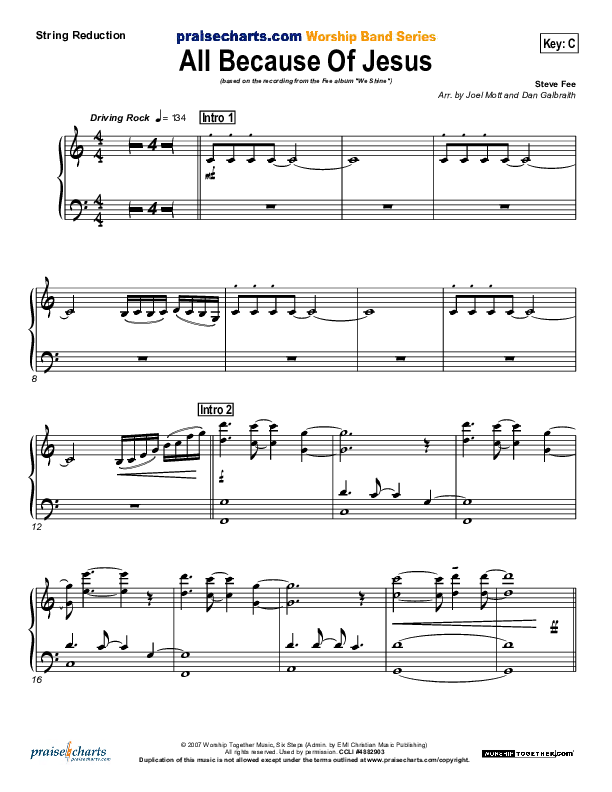 Download the Orchestration for All Because Of Jesus by FEE Band, from the album We Shine. This song was arranged by Joel Mott / Daniel Galbraith in the key of Bb, C.