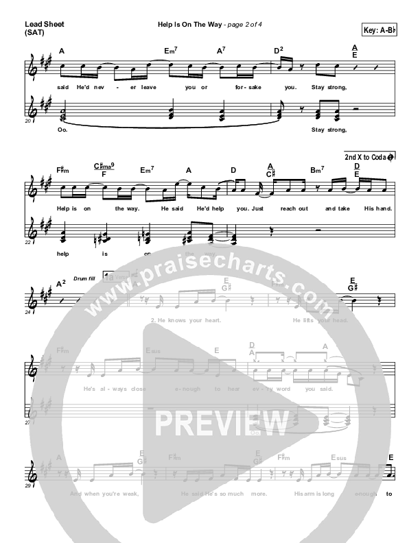 Download the sheet music for Help Is On The Way by Michael W. Smith, from the album A New Hallelujah. This song was arranged by Erik Foster in the key of A, G.