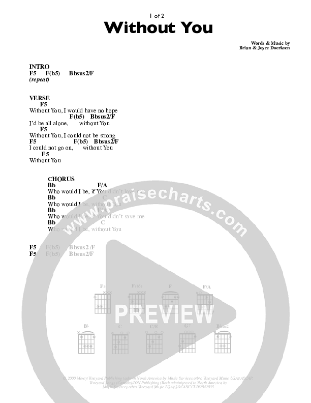 Download the PDF Chord Charts for Without You by Brian Doerksen, from the album It's Time.