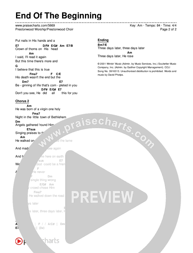 End Of The Beginning Chords PDF (Prestonwood Worship / Prestonwood Choir)