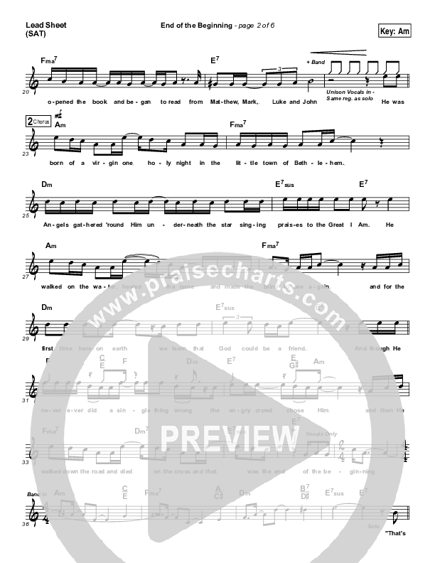 Download the sheet music for End Of The Beginning by Prestonwood Worship / Prestonwood Choir, from the album You Are Holy - Prestonwood Choir. This song was arranged by Brad Henderson in the key of Am, Bbm.