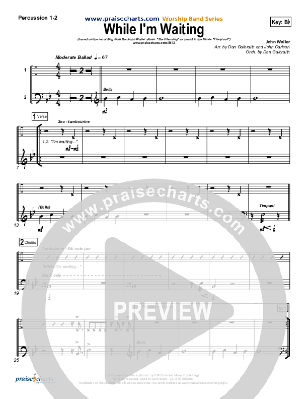 Download the Orchestration for While I Am Waiting by John Waller, from the album The Blessing. This song was arranged by Daniel Galbraith / John Carlson in the key of Bb, C.