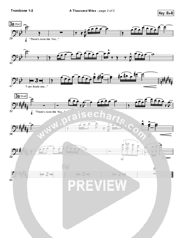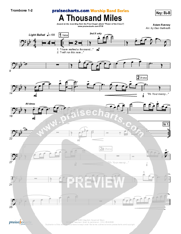 Download the Trombone 1,2 sheet music for A Thousand Miles by Free Chapel, from the album Power Of The Cross. This song was arranged by Daniel Galbraith in the key of Bb, Db.