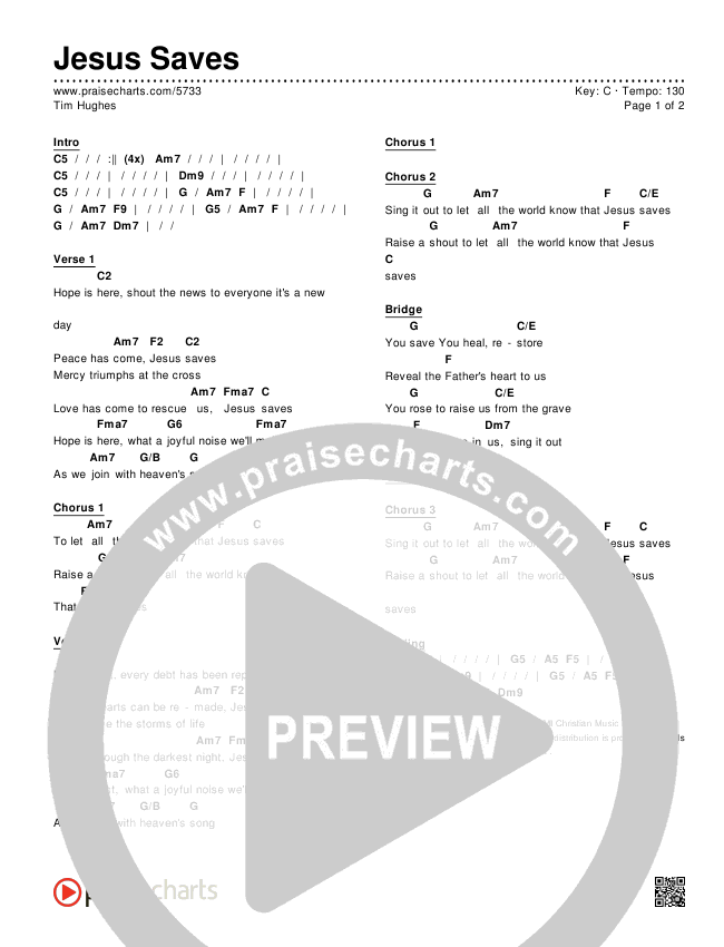 Download the PDF Chord Charts for Jesus Saves by Tim Hughes, from the album Happy Day. This song was arranged by Jared Haschek / John Carlson in the key of Bb, C.