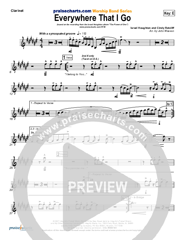 Download the Orchestration for Everywhere That I Go by Israel Houghton, from the album The Power of One. This song was arranged by John Wasson in the key of E, F.