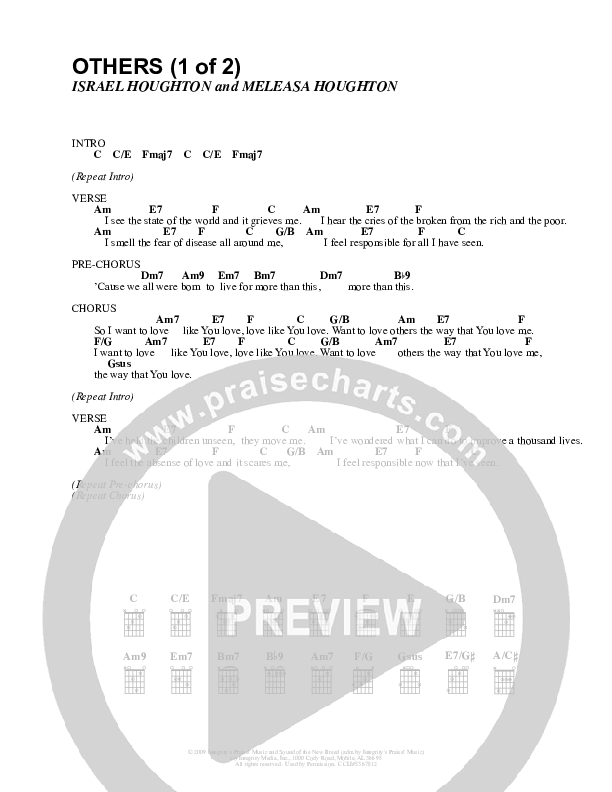Download the PDF Chord Charts for Others by Israel Houghton, from the album The Power of One. This song was arranged by Integrity Music in the key of C.