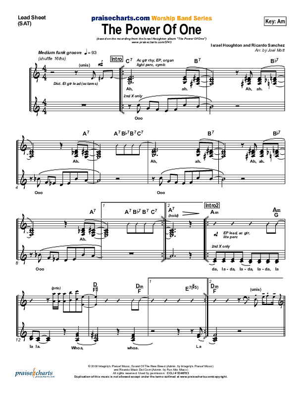 Download the Orchestration for The Power of One by Israel Houghton, from the album The Power of One. This song was arranged by Joel Mott in the key of Am, Gm.