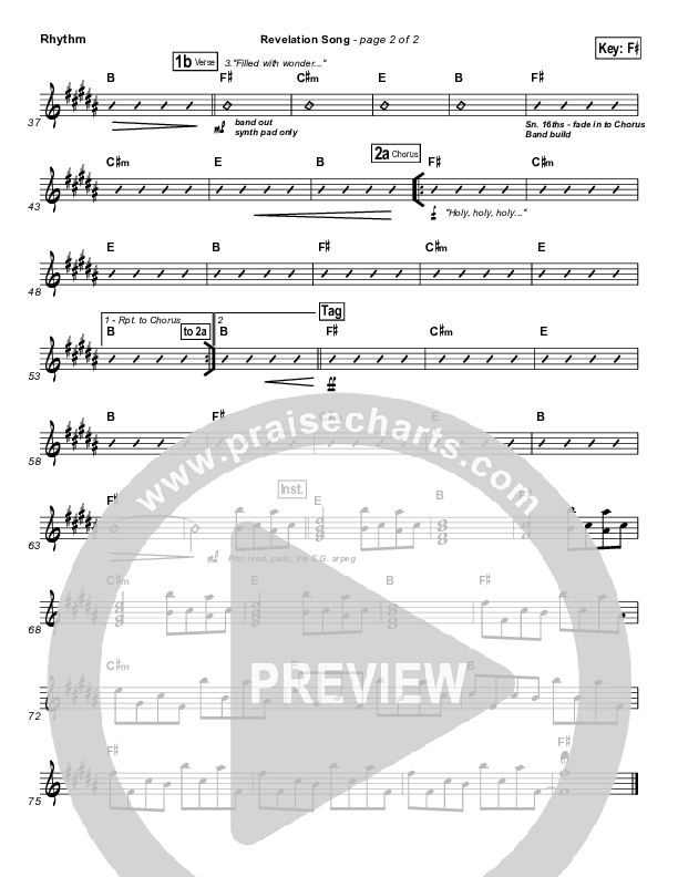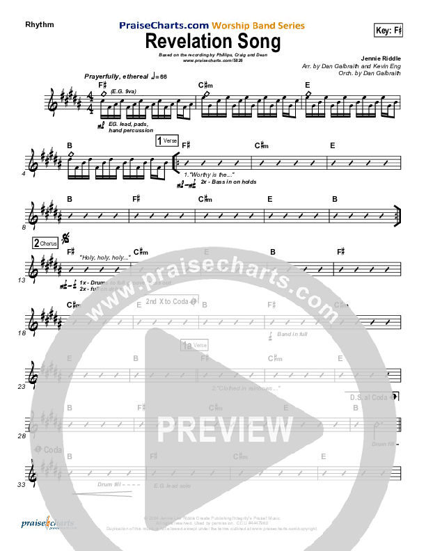 Download the Rhythm Chart for Revelation Song by Phillips Craig & Dean, from the album Revelation Song - Single. This song was arranged by Daniel Galbraith in the key of E, F#.